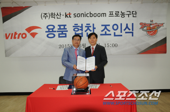 프로농구 kt 소닉붐이 스포츠용품 회사인 ㈜학산과 농구 용품 협찬 조인식을 했다.