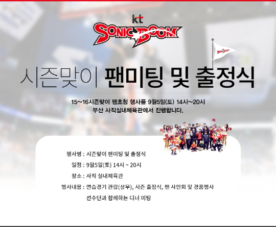 kt 소닉붐(단장 임종택, http://ktsonicboom.com)이 5일 부산 사직실내체육관에서 출정식 및 팬 초청 미팅을 시행한다.