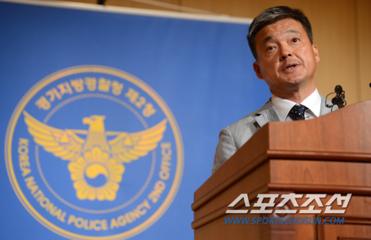 경기지방경찰청 제2청 박민순 사이버수사팀장이 8일 경기지방경찰청 제2청 강당에서 승부조작 및 불법 스포츠 도박혐의 수사결과에 대한 브리핑을 하고 있다. 경기지방경찰청 제2청은 프로농구 경기에서 고의로 승부를 조작하고 스포츠 도박을 한 혐의(국민체육진흥법 위반)로 농구선수 A모(29)씨와 유도선수 B모(28)씨를 불구속 입건했다. 또 불법 스포츠 도박 인터넷사이트에서 배팅한 혐의(국민체육진흥법 위반) 등으로 전·현직 농구 선수 12명, 유도선수 13명, 레슬링선수 1명을 불구속 입건했다. 의정부=허상욱 기자 wook@sportschosun.com/2015.09.08/