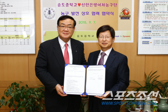 여자프로농구 신한은행(구단주 조용병)이 중학농구의 명문 송도중과 7일 스포츠문화 활성화를 위한 협약식을 가졌다.