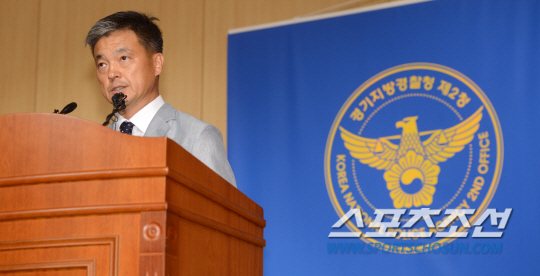 경기지방경찰청 제2청 박민순 사이버수사팀장이 8일 경기지방경찰청 제2청 강당에서 승부조작 및 불법 스포츠 도박혐의 수사결과에 대한 브리핑을 하고 있다. 경기지방경찰청 제2청은 프로농구 경기에서 고의로 승부를 조작하고 스포츠 도박을 한 혐의(국민체육진흥법 위반)로 농구선수 김모(29)씨와 유도선수 황모(28)씨를 불구속 입건했다. 또 불법 스포츠 도박 인터넷사이트에서 배팅한 혐의(국민체육진흥법 위반) 등으로 전·현직 농구 선수 12명, 유도선수 13명, 레슬링선수 1명을 불구속 입건했다. 의정부=허상욱 기자 wook@sportschosun.com/2015.09.08/ |