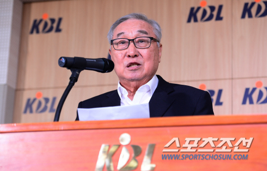 KBL 김영기 총재가 29일 기자회견을 통해 최근 KT 전창진 감독, 전 현직 선수의 승부조작 및 불법도박 가담 혐의에 대해 공식 사과했다. 또 "재발 방지를 위해 지속적인 관리 감독을 강화해 나가겠다" 고 밝혔다. 조병관기자 rainmaker@sportschosun.com/2015.06.29/