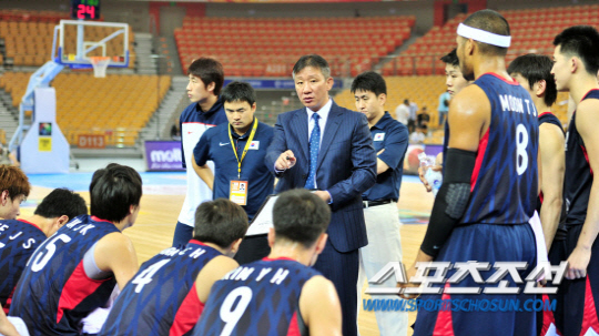 2009년 텐진 아시아선수권에 이어 2011 우한 아시아선수권에서도 대표팀을 맡아 작전 지시를 하는 허 재 감독. 스포츠조선 DB.