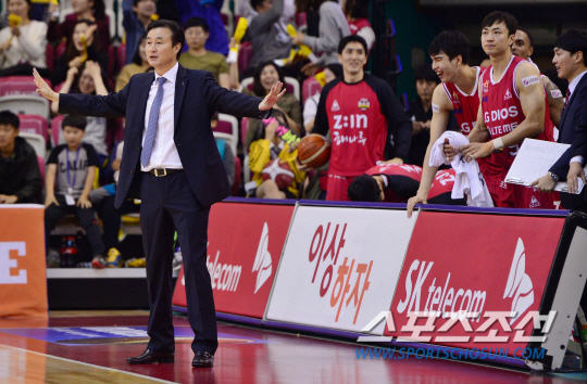 16일 오후 창원실내체육관에서 2015-2016 KCC 프로농구 전주KCC와 창원LG의 경기가 열렸다. LG 김진 감독이 선수들에게 지시를 내리고 있다. 창원=김경민 기자 kyungmin@sportschosun.com