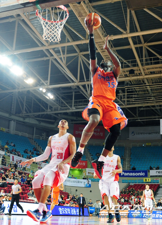 | 전자랜드 알파 뱅그라의 골밑 슛 장면. 사진제공=KBL |