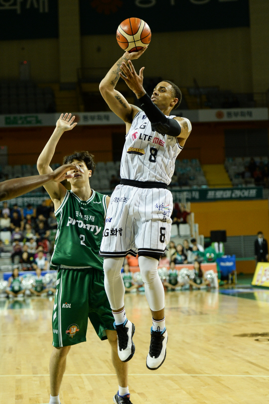 창원 LG 필즈가 18일 원주 동부전에서 슛을 시도하고 있다. 사진제공=KBL