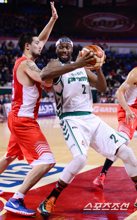 2015-2016 프로농구 서울 SK와 원주 동부의 경기가 25일 잠실 학생체육관에서 펼쳐 졌다. 원주 동부 벤슨(오른쪽)이 서울 SK 김민수를 등지고 플레이를 하고 있다. 잠실학생체=조병관기자 rainmaker@sportschosun.com/2015.10.25/