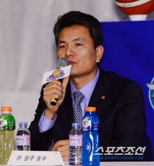 2015-2016시즌 KCC 프로농구 미디어데이가 7일 오전 JW메리어트호텔 그랜드 볼룸에서 열렸다. 미디어데이에서 동부 김영만 감독이 인사말을 하고 있다. 이번 행사에는 10개 구단 감독을 비롯해 각 구단의 대표 선수가 참석하여 다가올 시즌에 임하는 출사표와 각오를 밝혔고, 사전 온라인과 SNS를 통해 선정된 팬들의 질문에 답하는 질의응답 시간도 마련됐다. 김경민 기자 kyungmin@sportschosun.com / 2015.09.07.