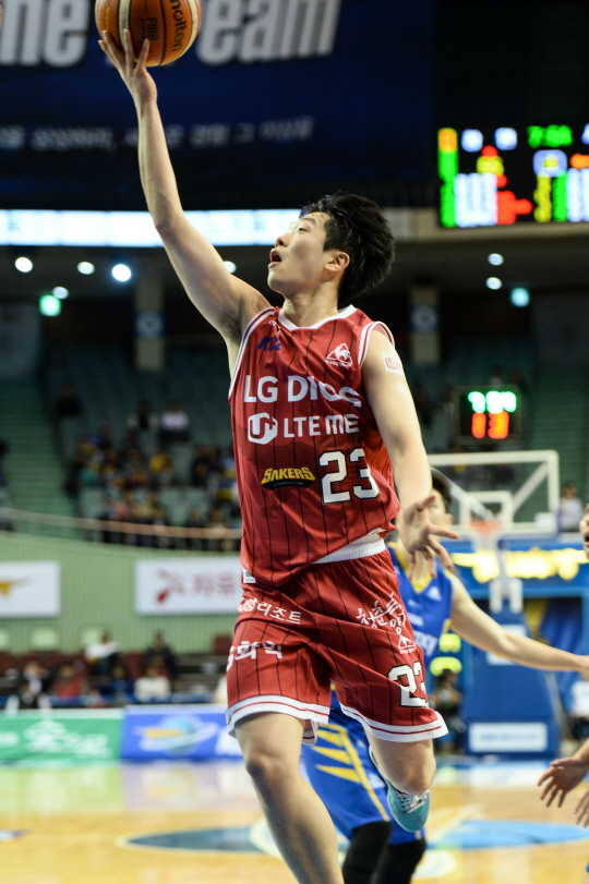 창원 LG의 루키 한상혁이 28일 서울 삼성전에서 레이업슛을 시도하고 있다. 사진제공=KBL