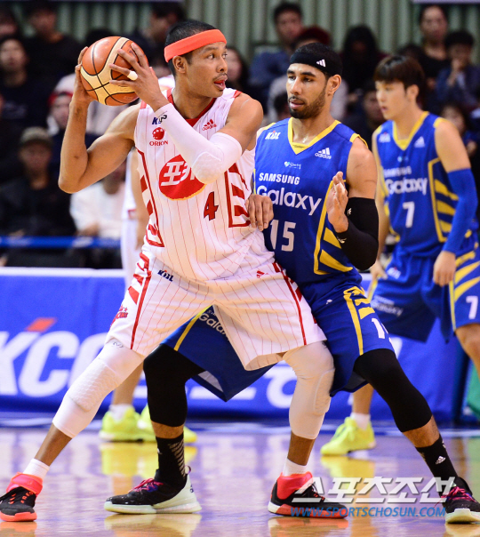2015-2016 프로농구 서울 삼성과 고양 오리온스의 경기가 1일 잠실 실내체육관에서 펼쳐 졌다. 서울 삼성 문태영(오른쪽)이 형 고양 오리온스 문태종을 밀착 마크하고 있다. 잠실=조병관기자 rainmaker@sportschosun.com/2015.11.01/ |