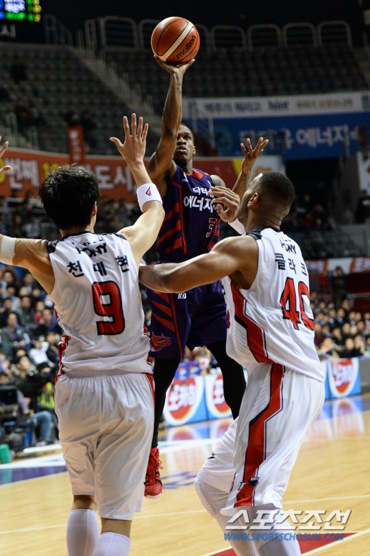 오리온 핵심은 애런 헤인즈다. 기본적으로 그가 좋아하는 미드 레인지 점프슛, 돌파 후 골밑 슛 & 패싱게임을 차단하겠다는 의지.