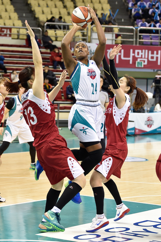KEB하나은행은 주 득점원 샤데 휴스턴이 부상(무릎 허리) 이후 복귀전에서 해결사 노릇을 했다. 외국인 선수 드래프트 전체 1순위인 휴스턴은 25득점(8리바운드)으로 이름값을 톡톡히 해냈다.