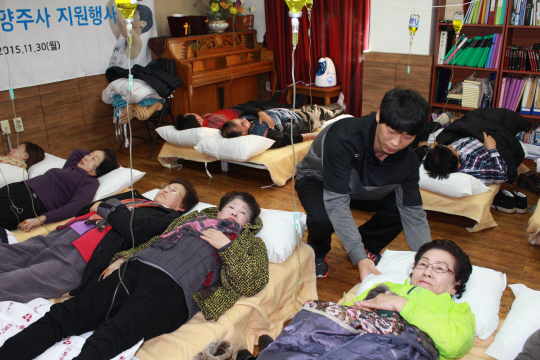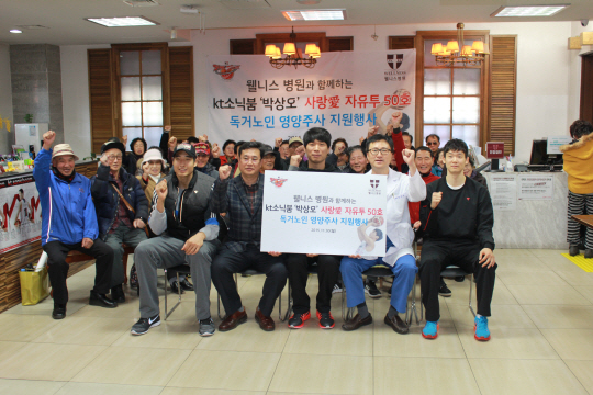 kt 소닉붐(단장 임종택)가 최근 웰니스병원(병원장 김동완)과 함께 독거노인을 대상으로 영양주사 지원행사를 웰니스병원에서 시행했다. 행사에는 kt 소닉붐 임종택 단장과 박상오 김현민 김현수 등이 참석했다.