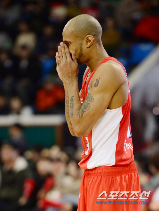 1일 오후 서울 잠실실내체육관에서 2015-2016 프로농구 안양 KGC와 서울 SK의 경기가 열렸다. 패스 미스를 범한 SK 스펜서가 아쉬워하고 있다. 잠실실내체=김경민 기자 kyungmin@sportschosun.com/2015.12.01. |