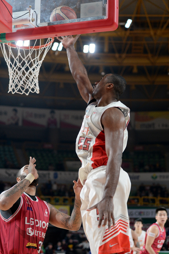 22일 창원 실내체육관에서 열린 '2015-2016 KCC 프로농구' 창원 LG 와 서울 SK 의 경기, 서울 SK 사이먼이 골밑슛을 성공시키고 있다. 사진제공=KBL