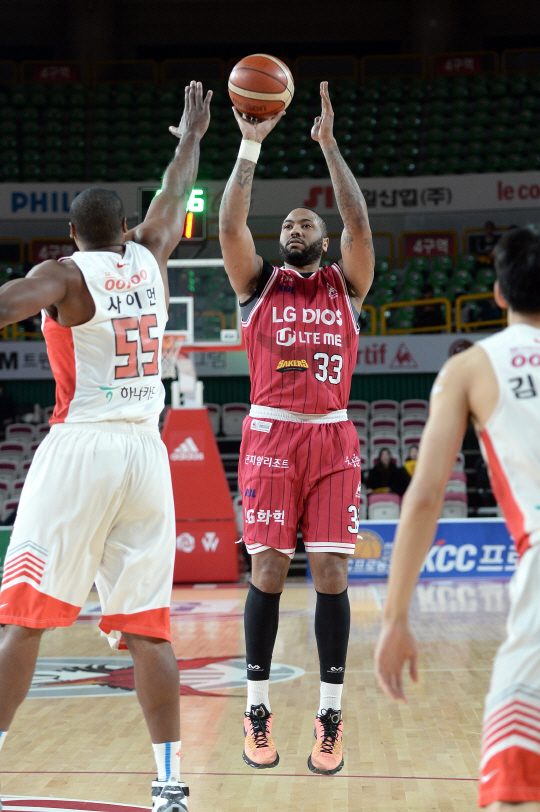 | 창원 LG 길렌워터가 22일 서울 SK전에서 슛을 시도하고 있다. 사진제공=KBL |