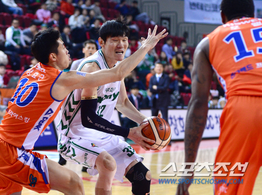 24일 인천삼산체육관에서 프로농구 인천 전자랜드와 원주 동부의 경기가 열렸다. 동부 김주성이 전자랜드 정효근(왼쪽)의 수비를 제치며 돌파를 시도하고 있다. 인천=송정헌 기자 songs@sportschosun.com/2015.12.24 |