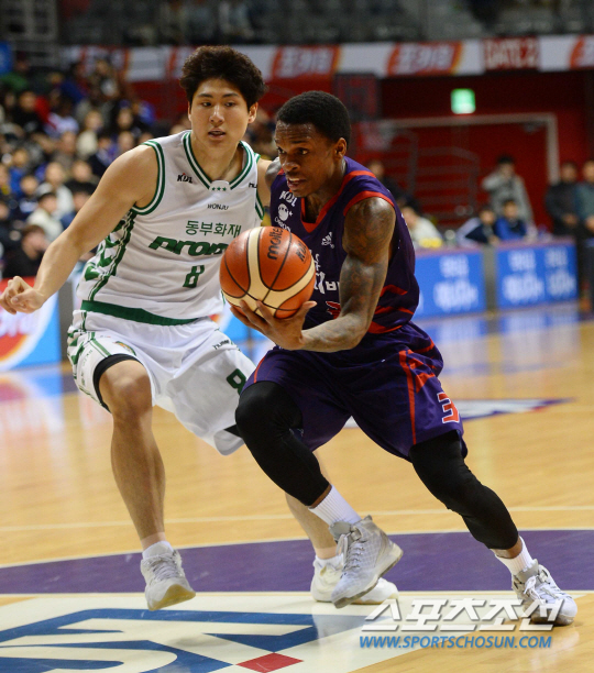 2015-2016 프로농구 고양오리온과 원주 동부의 경기가 30일 고양실내체육관에서 열렸다. 오리온의 조잭슨이 동부 김창모의 수비사이로 돌파를 시도하고 있다. 고양=최문영 기자 deer@sportschosun.com /2015.12.30/