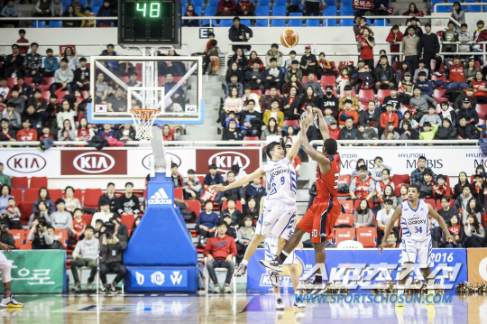 그리고 커스버트 빅터가 3점슛 라인 근처에서 볼을 어렵게 잡았다. 스텝을 정리한 그는 3점 라인 밖에서 주희정의 수비 위로 3점포를 쐈고, 거짓말처럼 림에 빨려 들어갔다.