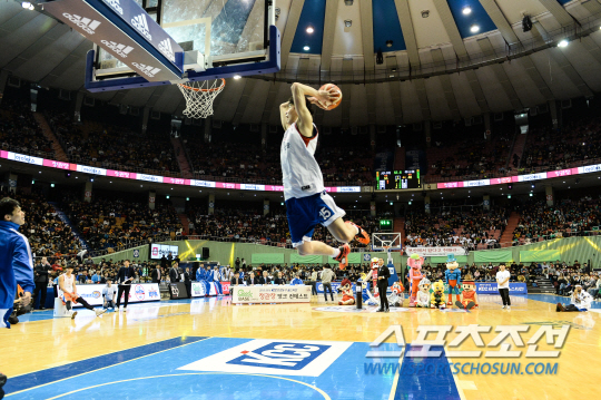 확실히 프로는 달라야 한다. 코트에서 보여주는 모습은 그래야 한다. 실제적 경기력 뿐만 아니라 올스타전에서 나오는 퍼포먼스도 마찬가지다. 김종규와 김선형은 코트에서 고단한 슈팅 훈련 이후 즐거움을 찾기 위해 덩크슛을 터뜨리다 방법을 만들어냈다. 한 차례 시도만에 거뜬히 성공시켰다. 코트에서 노력한, 그래서 프로 다웠던 퍼포먼스. 김종규의 덩크왕 등극은 그래서 더욱 가치있다. 류동혁 기자 sfryu@sportschosun.com