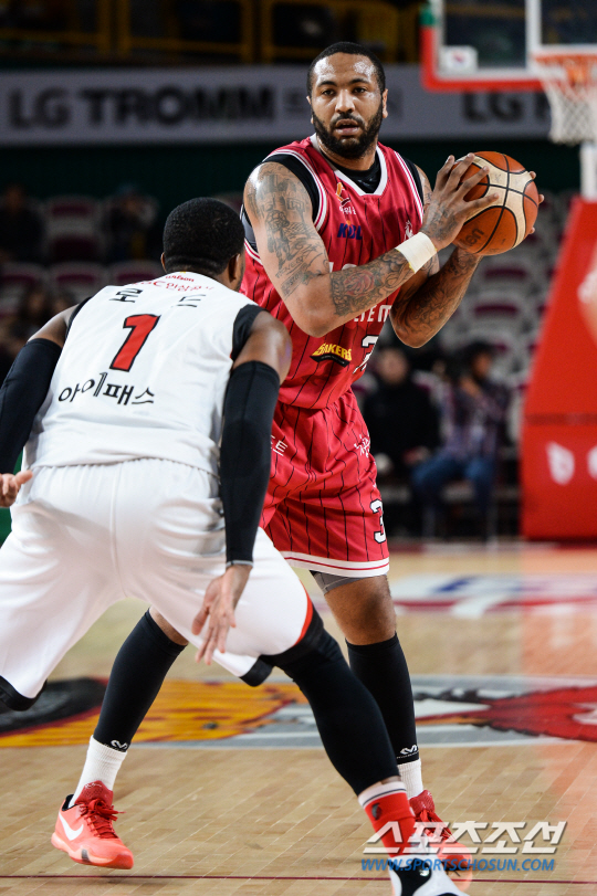 LG 트로이 길렌워터가 돌아왔다. 그는 23득점, 4리바운드를 기록했다.