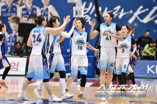 KDB는 이후 맹공을 퍼부었지만 슛은 아쉽게 림을 벗어났고, 결국 삼성생명 선수들이 부저와 함께 승리의 하이파이브를 했다.