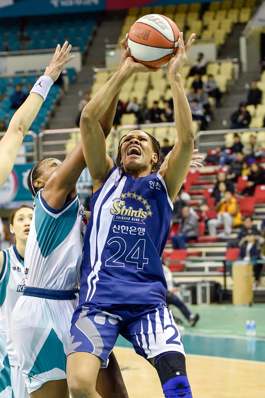 신한은행은 5일 경기도 구리시체육관에서 열린 2015~2016 여자프로농구 정규리그 원정 KDB생명전에서 19점을 넣은 외국인 선수 모니크 커리와 나란히 13점씩 합작한 윤미지-김단비의 활약에 힘입어 74대71로 이겼다. 이날 승리로 신한은행은 3연패에서 벗어남과 동시에 시즌 12승(15패)째를 올려 단독 4위가 됐다. 3위 삼성생명과 2경기 차이다.