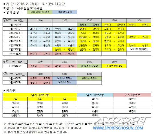 A조 : 명지대, 동국대, 조선대, 성균관대