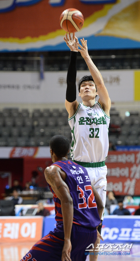 고양 오리온과 원주 동부의 프로농구 경기가 18일 고양실내체육관에서 열렸다. 동부 김주성이 오리온 헤인즈를 따돌린 후 중거리슛을 시도하고 있다. 오리온은 31승 21패로 3위, 동부는 25승 27패로 6위를 달리고 있다. 정재근 기자 cjg@sportschosun.com