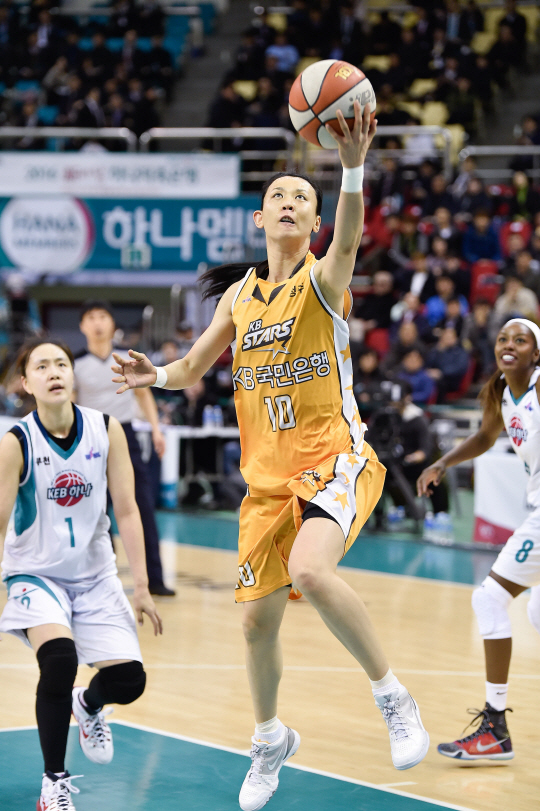 KB스타즈는 10일 부천체육관에서 벌어진 KEB하나은행과의 2015~2016시즌 KDB생명 여자농구 PO 1차전에서 72대69로 승리했다. KB스타즈 외국인 선수 햄비가 더블더블(26득점 17리바운드)로 공격을 이끌었다.