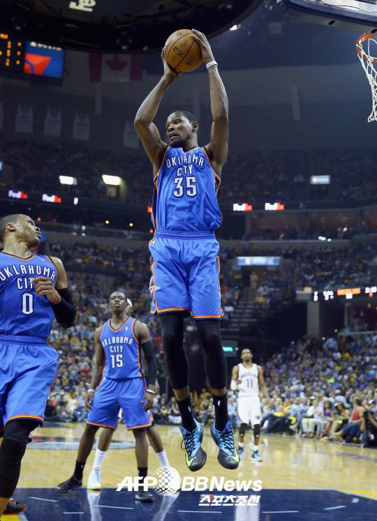 오클라호마시티는 26일(한국시각) 미국 오클라호마주 체서피크 에너지 아레나에서 열린 8강 플레이오프 5차전에서 러셀 웨스트브룩, 케빈 듀란트 '쌍포'를 앞세워 118대104로 승리했다. 웨스트브룩은 36득점 12리바운드 9어시스트, 듀란트는 33득점이다. 8강전 시리즈를 4승1패로 끝낸 오클라호마시티는 4강에 선착한 샌안토니오 스퍼스와 맞붙는다.