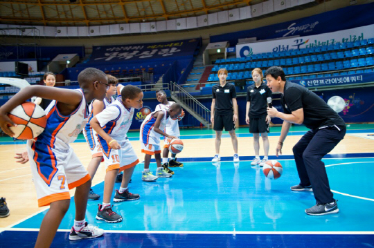 여자 프로농구 인천 신한은행 에스버드가 유소년 선수들과 뜻깊은 시간을 보냈다.