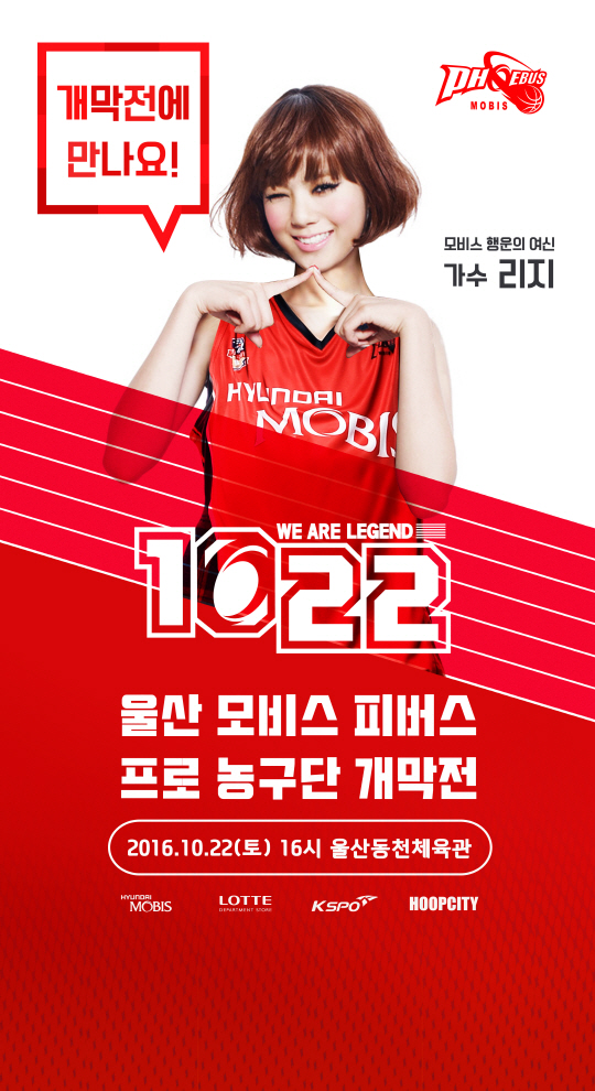 한편, 모비스의 홈 개막전은 오는 22일 오후 4시 울산동천체육관에서 열린다. 모비스는 이날 리지의 시투 뿐 아니라 역대 엠블럼 및 우승기 소개한다. 또, 우승 도전 의지를 담은 'WE ARE LEGEND' 영상을 공개한다. 그리고다양한 경품을 팬들에게 추첨을 통해 지급한다.