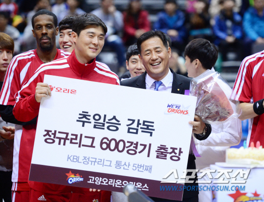 오리온 추일승 감독은 이번 경기로 역대 통산 5번째 정규리그 600경기 출전 기록을 세웠다. 팀 승리로 대기록을 자축했다.