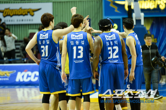 삼성 썬더스 선수들이 이상민 감독에게 5연승을 생일선물로 안겼다.