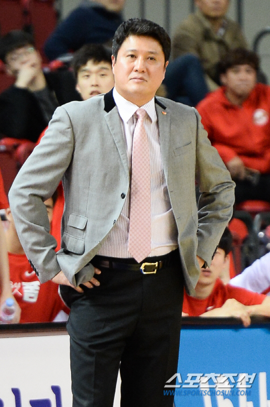 SK 문경은 감독이 경기가 풀리지 않자 심각한 표정으로 코트를 바라보고 있다. 사진제공=KBL