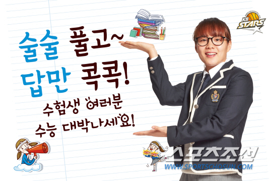 KB스타즈는 '2017년 대학수학능력시험'이 열리는 17일 청주여고를 방문해 수험장에 입장하는 수험생들에게 따듯한 차와 다과를 제공하고 수험생들을 응원할 계획이라고 밝혔다. 또한 12월말까지 수험표를 지참하고 청주 홈경기장을 찾는 수험생들에게 무료입장 이벤트도 진행할 예정이다.