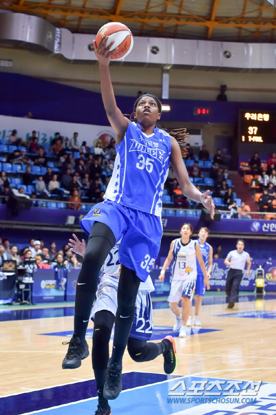 큰 키를 이용해 제공권을 장악한 존스의 활약 덕분에 우리은행은 1라운드에서 5전 전승을 달리며 선두에 나설 수 있었다.