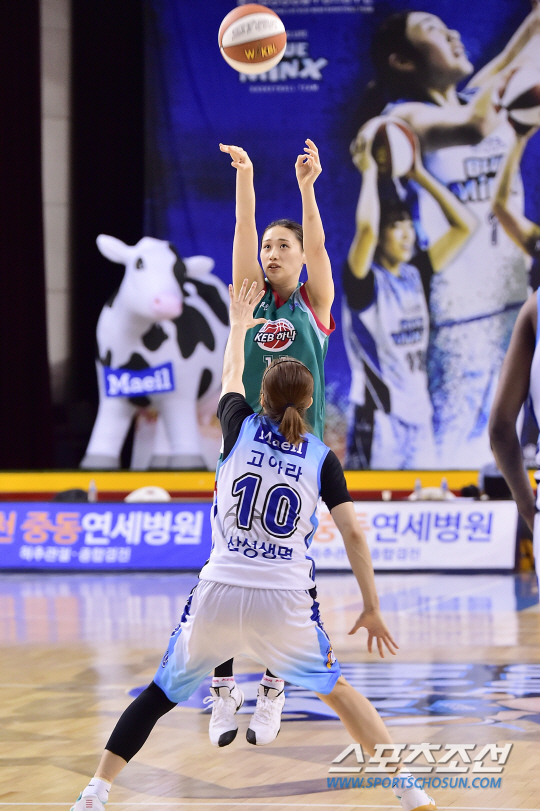 그러면서 3쿼터도 하나은행이 초반 분위기를 끌고 갔다. 백지은, 김지영, 강이슬이 공격을 주도했다. 최근 들어 부쩍 주목받고 있는 김지영은 전반까지 잠잠하다 3쿼터 존재감을 뽐냈다. 하지만 삼성생명에는 루키 이주연이 있었다. 이날 데뷔전을 치른 그는 3쿼터에만 5점으로 만만치 않은 기량을 과시했다. 처음 언니들과 공식 게임을 치렀지만 플레이에 여유가 넘쳤다. 3점 능력도 나쁘지 않았다. 3쿼터까진 53-47, 하나은행의 리드.