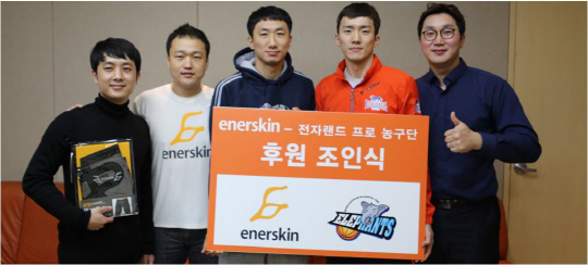 인천 전자랜드 프로농구단이 지난 25일 세계 최초의 입는 에너지라는 개념으로 출발한 기능성 스포츠 브랜드인 '에너스킨'과 제품 후원 조인식을 가졌다.