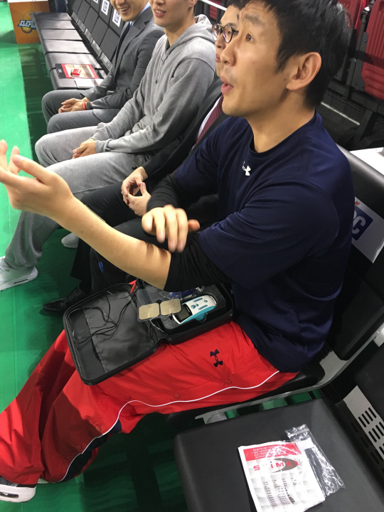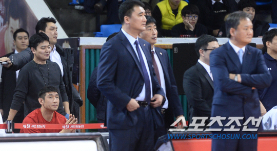남자 프로농구 울산 모비스에는 '벤치 워머'가 있다. 경기는 뛰지 못하고 파이팅만 외치는. 하지만 후보 선수가 아니라 MVP 4회, 챔프전 MVP 3회, 연봉 7억5000만원(전체 1위)을 받는 KBL리그 넘버원 스타다. 모비스 양동근은 지난 10월 개막전에서 왼손목 골절로 큰 수술을 받았다. 재활중인데 홈경기 뿐만 아니라 원정경기까지 동행하고 있다.