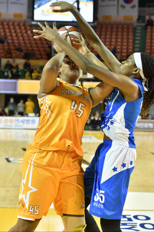 우리은행과 KB스타즈는 전반 극심한 슛난조에 시달렸다. 우리은행이 전반 24-12로 앞선 채 마쳤다. 두 팀 합산 36득점은 WKBL 사상 전반 합산 최소 기록이다.