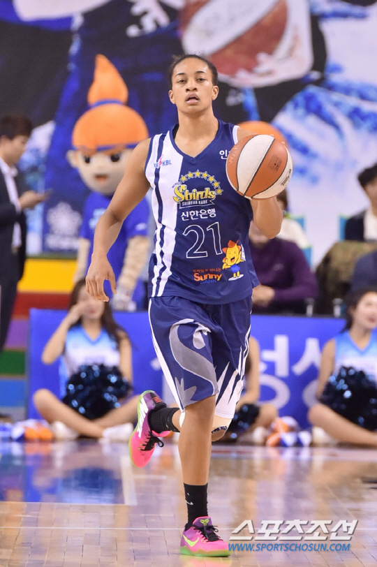신한은행 에스버드의 외국인 선수 알렉시즈가 팀을 4연승으로 이끌었다.