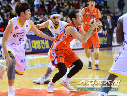 2016-2017 프로농구 인천전자랜드와 서울삼성의 경기가 12일 인천 삼산체육관에서 열렸다. 전자랜드 박성진이 삼성 천기범의 수비사이로 돌파를 시도하고 있다.