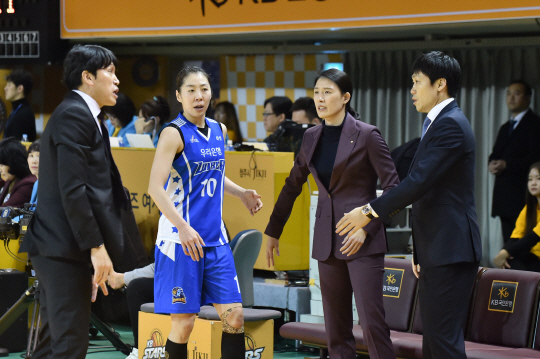 KB스타즈는 단타스가 빠졌지만 박지수가 3쿼터 막판 연속 4득점하며 박빙의 경기를 했다. 하지만 4쿼터 집중력 싸움에서 우리은행에 밀릴 수밖에 없었다. 박지수가 체력적으로 힘들어했고, 모니크 커리 혼자 공격을 하는 것도 한계가 있었다. KB스타즈는 경기 중 생긴 단타스 공백, 그리고 허리와 발목이 좋지 않아 이날 경기 아예 뛰지 못한 주포 강아정의 부상에 울어야 했다.