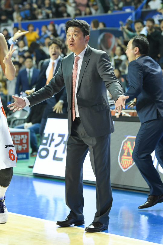전자랜드 유도훈 감독이 26일 전주체육관에서 열린 KCC와의 6강 플레이오프 5차전에서 심판에게 항의하고 있다. 사진제공=KBL