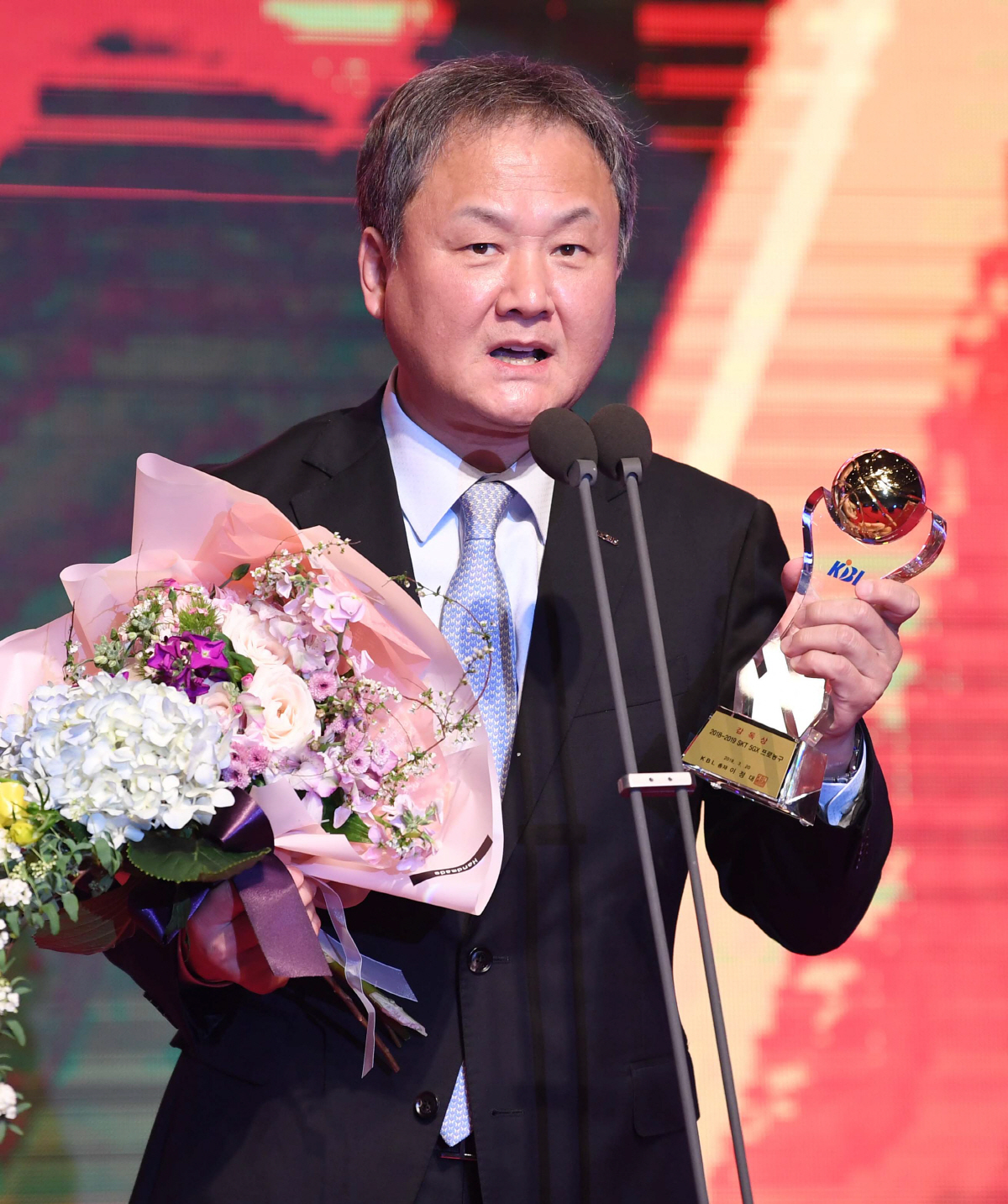 2018-2019 KBL 정규리그 시상식이 20일 오후 서울 삼성동 그랜드 인터컨티넨탈 호텔에서 열렸다. 시상식에서 감독상을 받은 현대모비스 유재학 감독이 인사말을 하고 있다. 김경민 기자 kyungmin@sportschosun.com/2019.03.20/