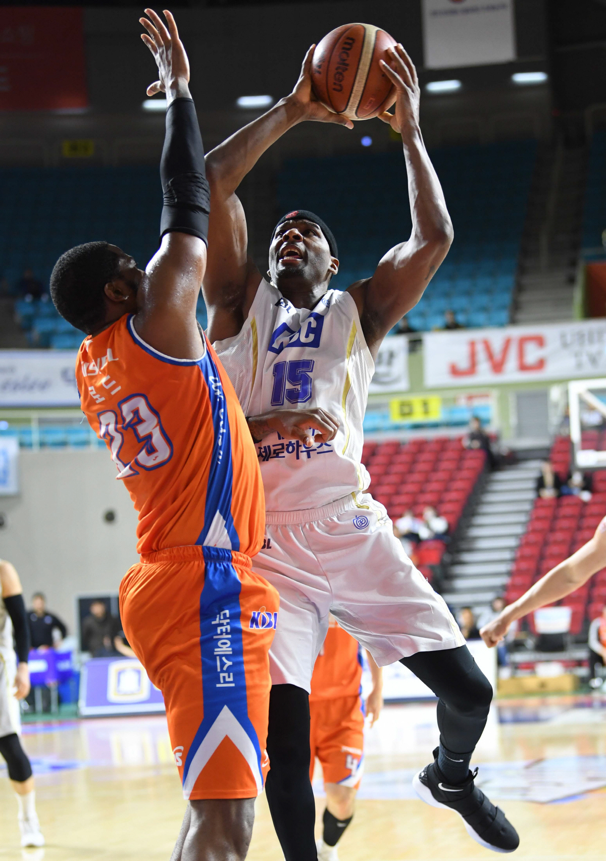 2018-2019 프로농구 인천전자랜드와 전주KCC의 경기가 19일 인천삼산월드체육관에서 열렸다. KCC 브라운이 전자랜드 로드의 수비 사이로 레이업 슛을 쏘고 있다. 인천=최문영 기자 deer@sportschosun.com /2019.03.19/