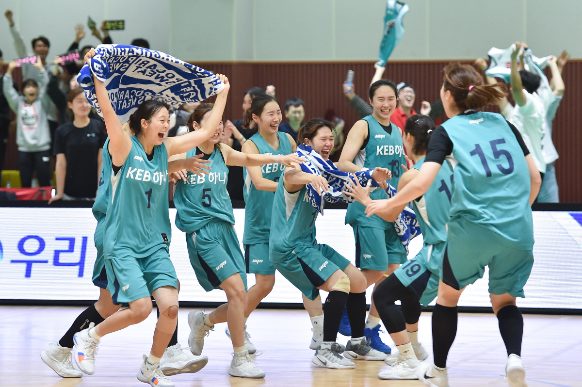| KEB하나은행이 2018년 박신자컵에서 우승한 뒤 환호하는 모습. 사진제공=WKBL |