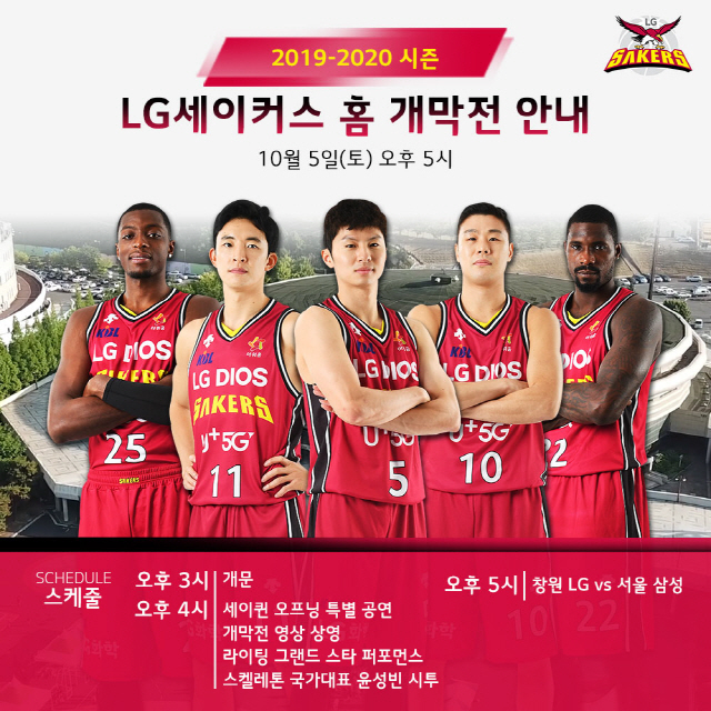 프로농구 창원 LG의 홈 개막전에서다. LG 구단은 5일 오후 5시 창원체육관에서 서울 삼성과 2019∼2020시즌 정규경기 홈 개막전을 갖는다.